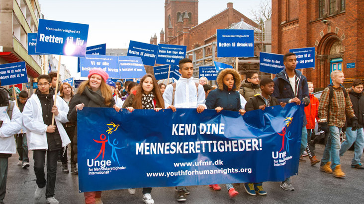 Nesta era de diversificação crescente étnica e religiosa, Youth for Human Rights é um líder em educação dos direitos humanos na Dinamarca, patrocinando atividades populares, desde distribuição de folhetos até palestras escolares e encontros públicos.
