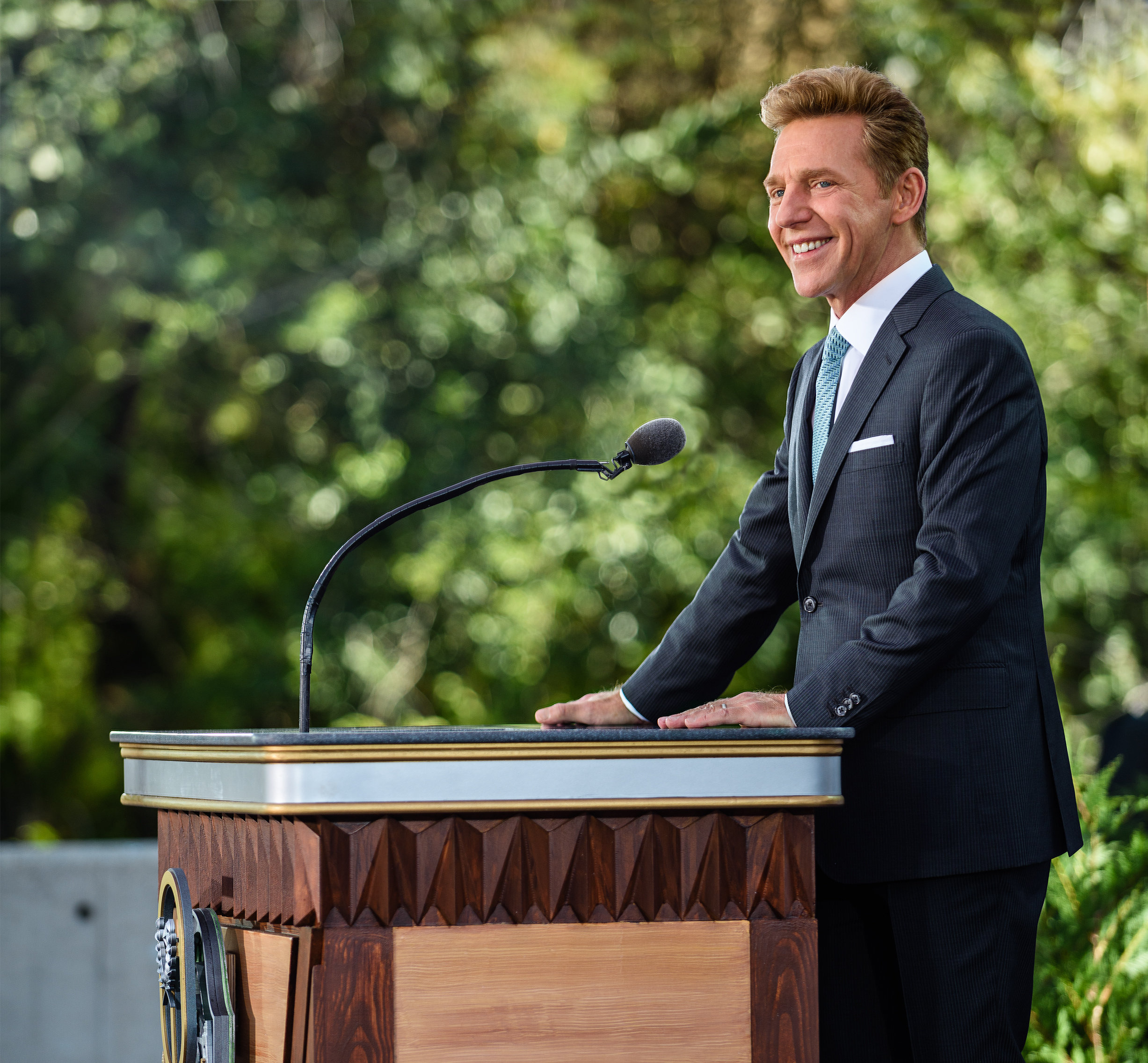 Descrevendo como é que ele «primeiro pôs os olhos neste palácio arbóreo situado no perímetro de um eucaliptal país das maravilhas», o Sr. Miscavige disse: «a frase mais descritiva para além de “mente estonteante” era “perfeitamente perfeito”. Bem, também é o momento da sua inauguração.»