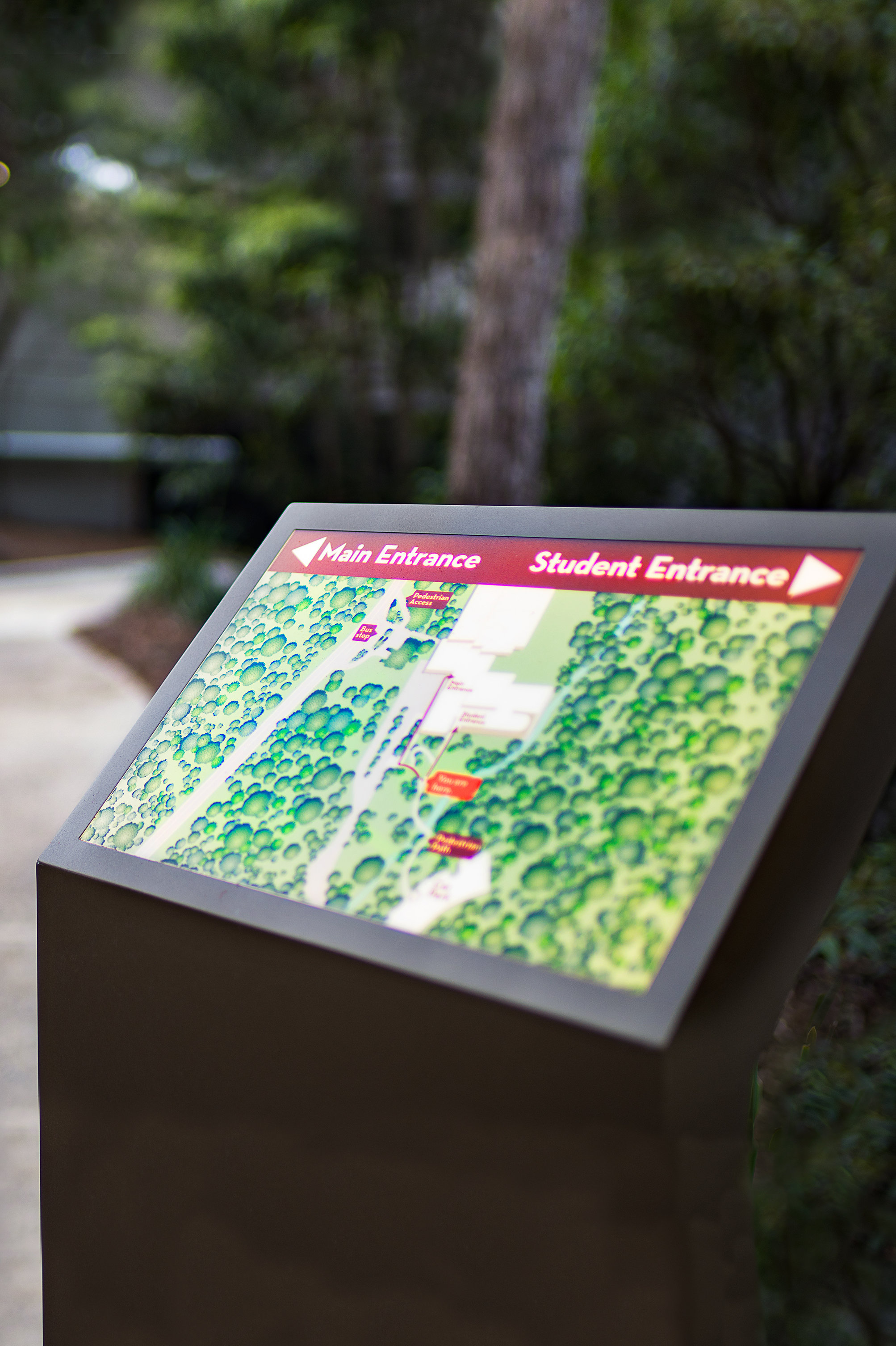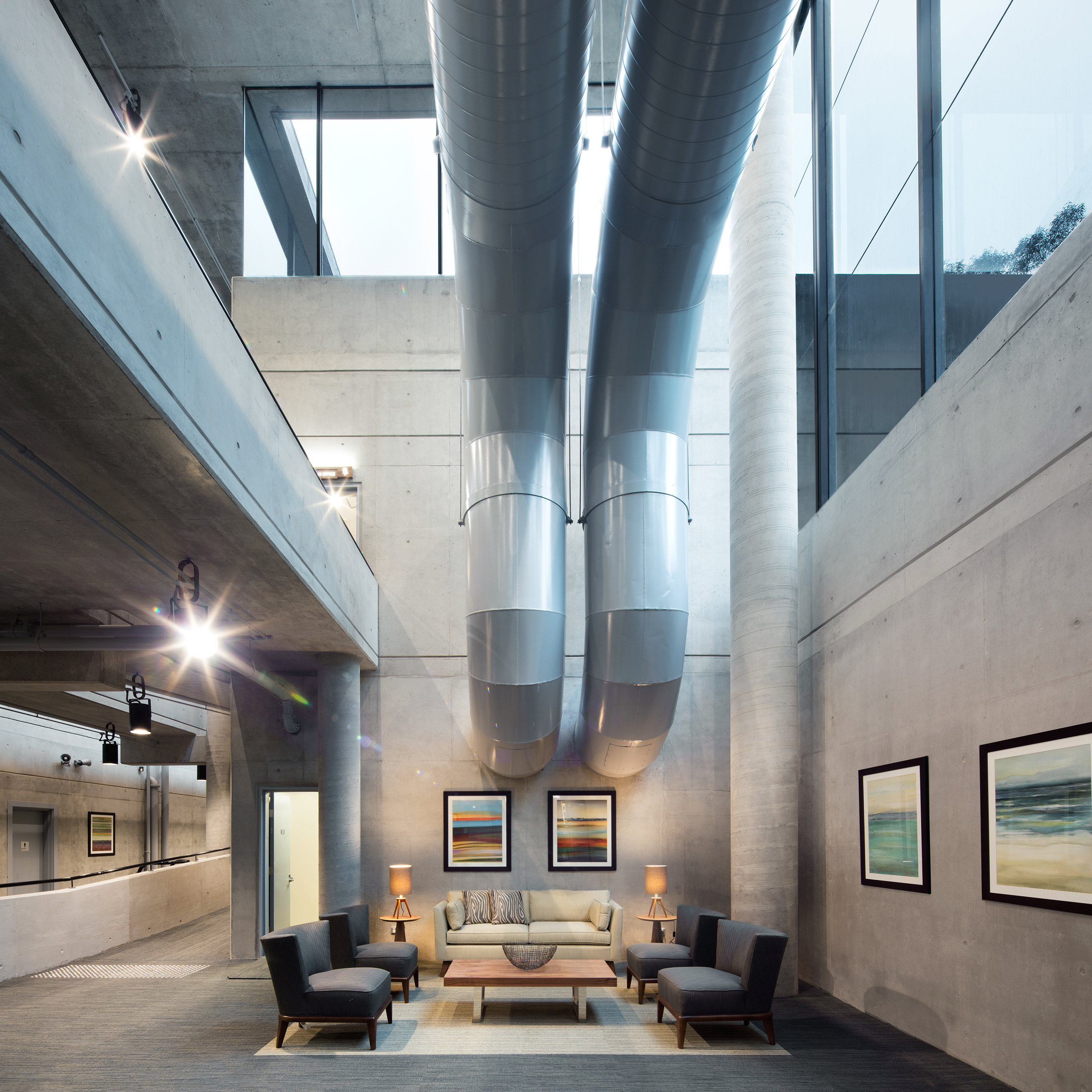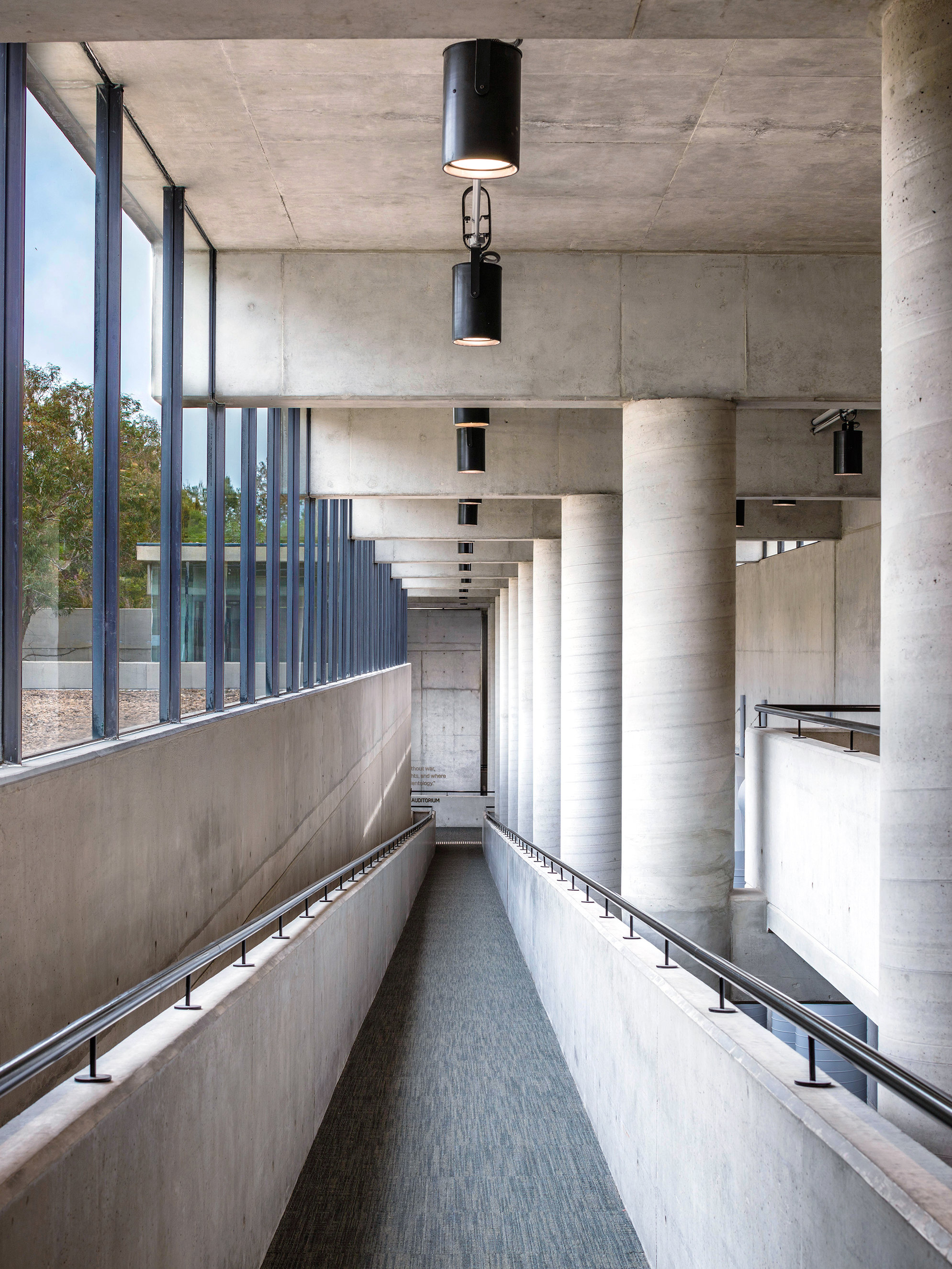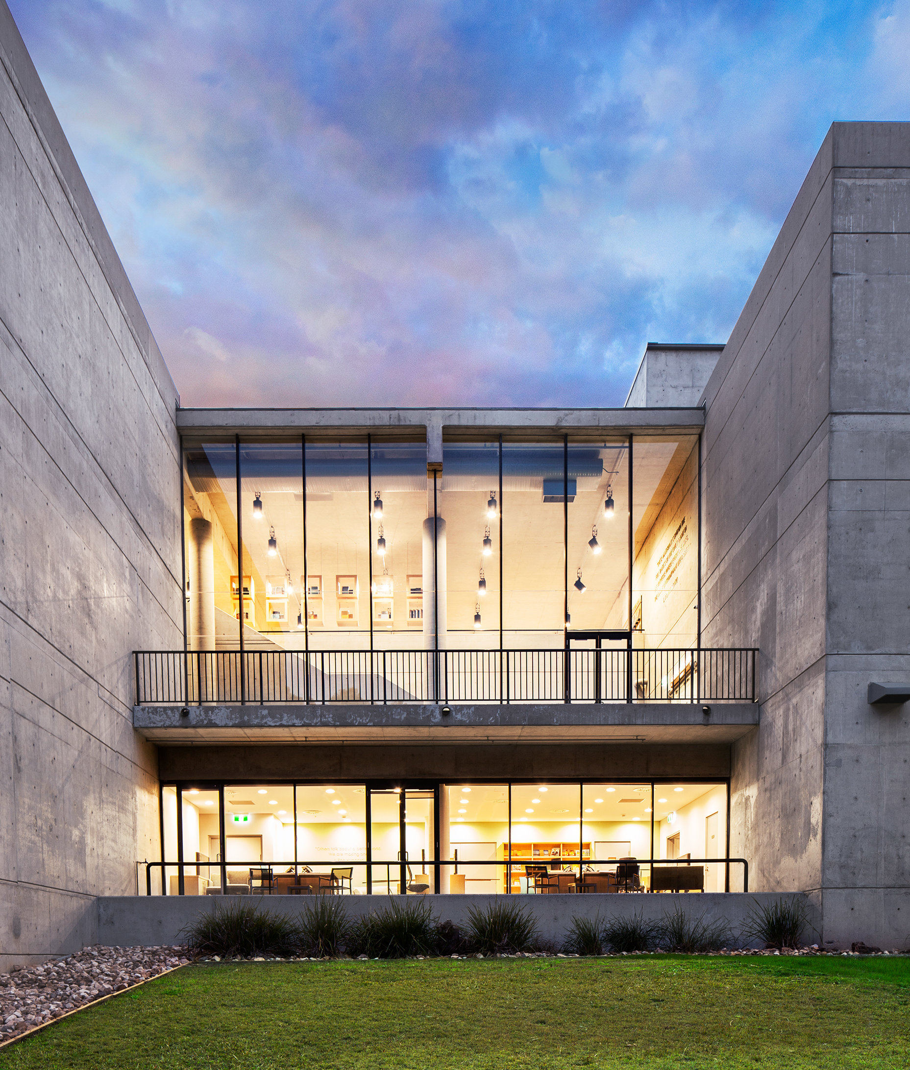 A estrutura ultramoderna apresenta um estilo minimalista com vários andares de vidro para uma impressionante paisagem de betão. Lá fora, a Blue Gum Creek segue a sua jornada através de 3 hectares de floresta de eucalipto nativo, literalmente um Jardim do Éden no centro da área metropolitana de Sydney.