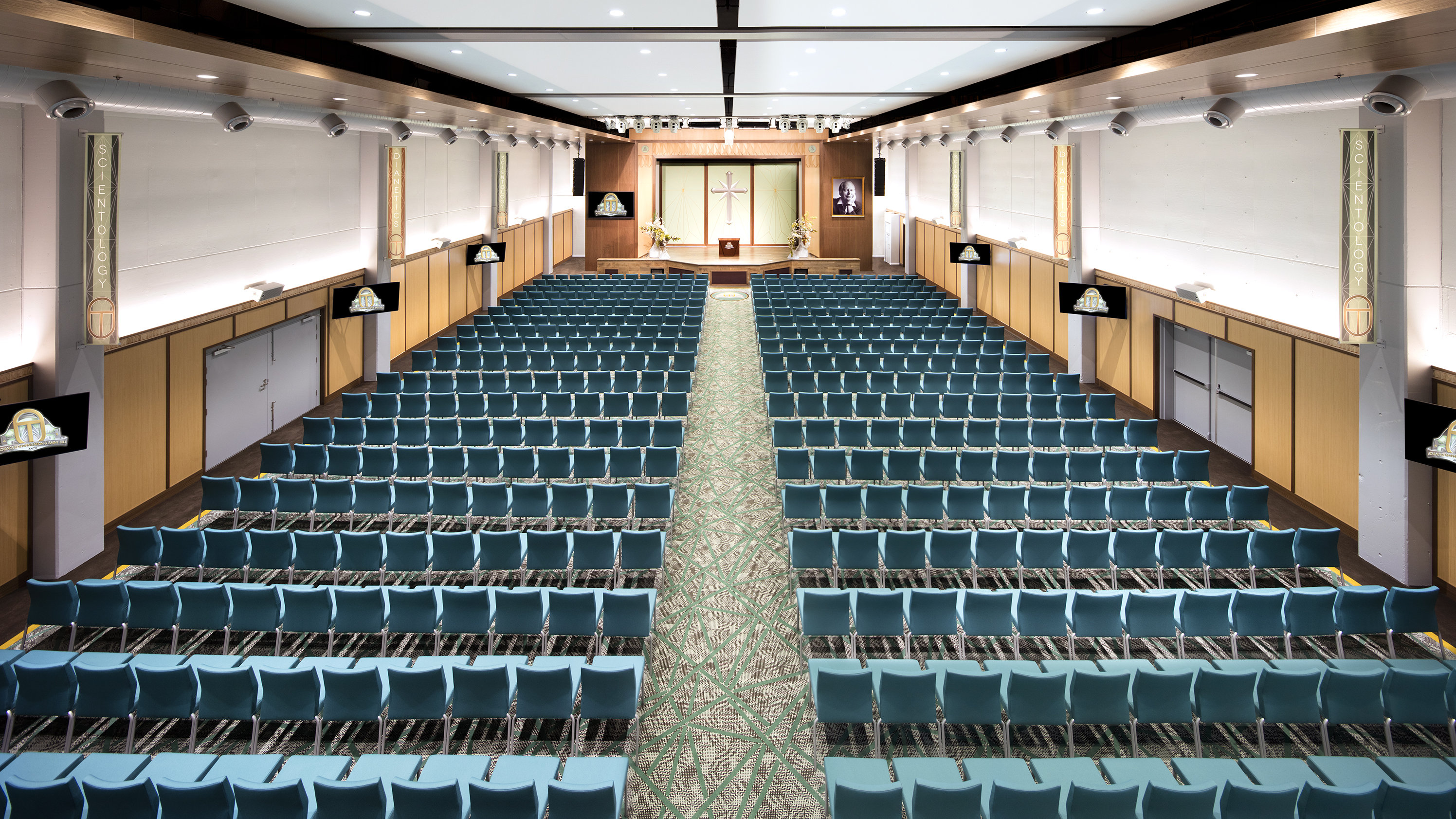 A Capela é ideal para os Serviços Dominicais e cerimónias de Scientology. Estas instalações de última geração está ainda equipada para sediar convenções continentais e seminários.
