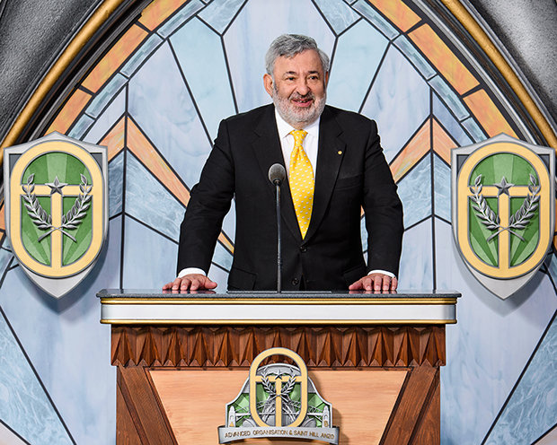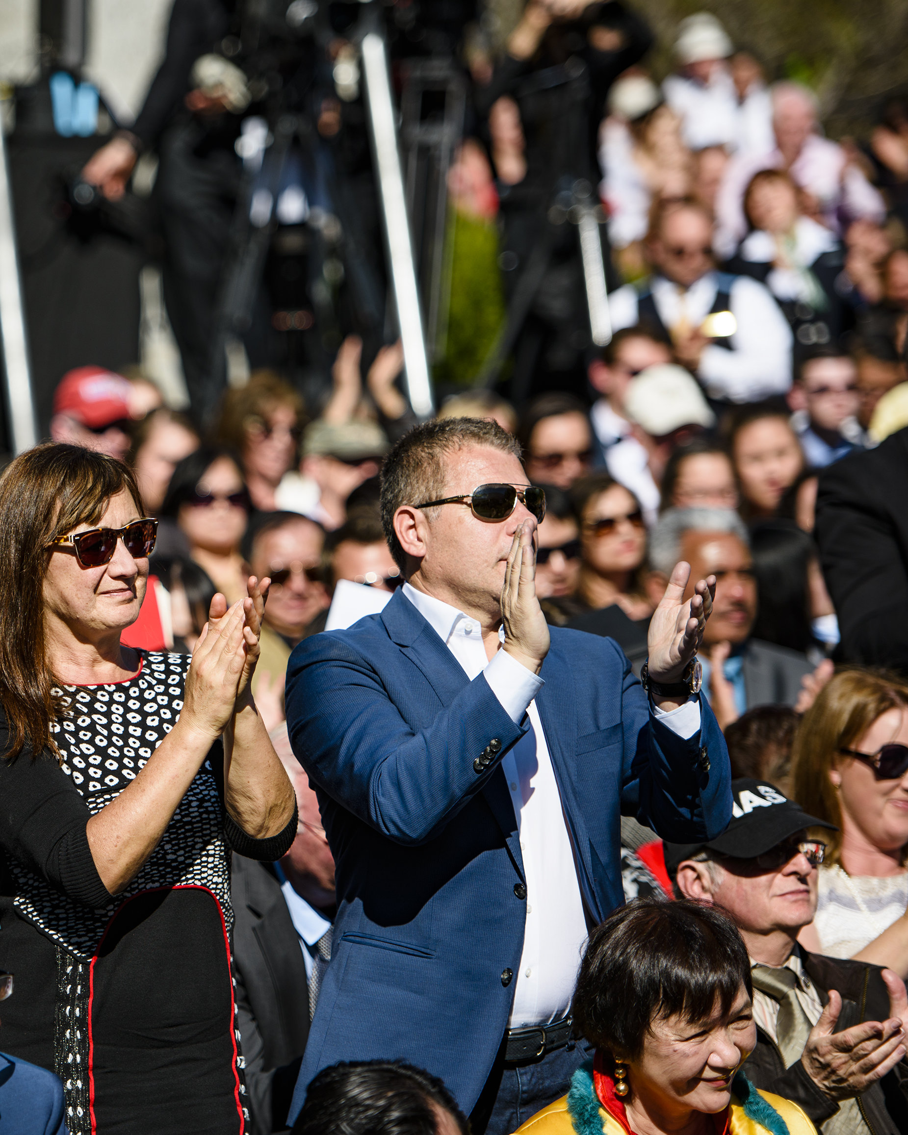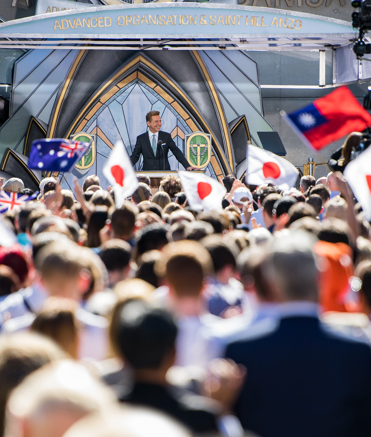 O Sr. Miscavige, recebeu aplausos sem limites quando subiu ao palco para esta cerimónia histórica de inauguração em Sydney, Austrália.