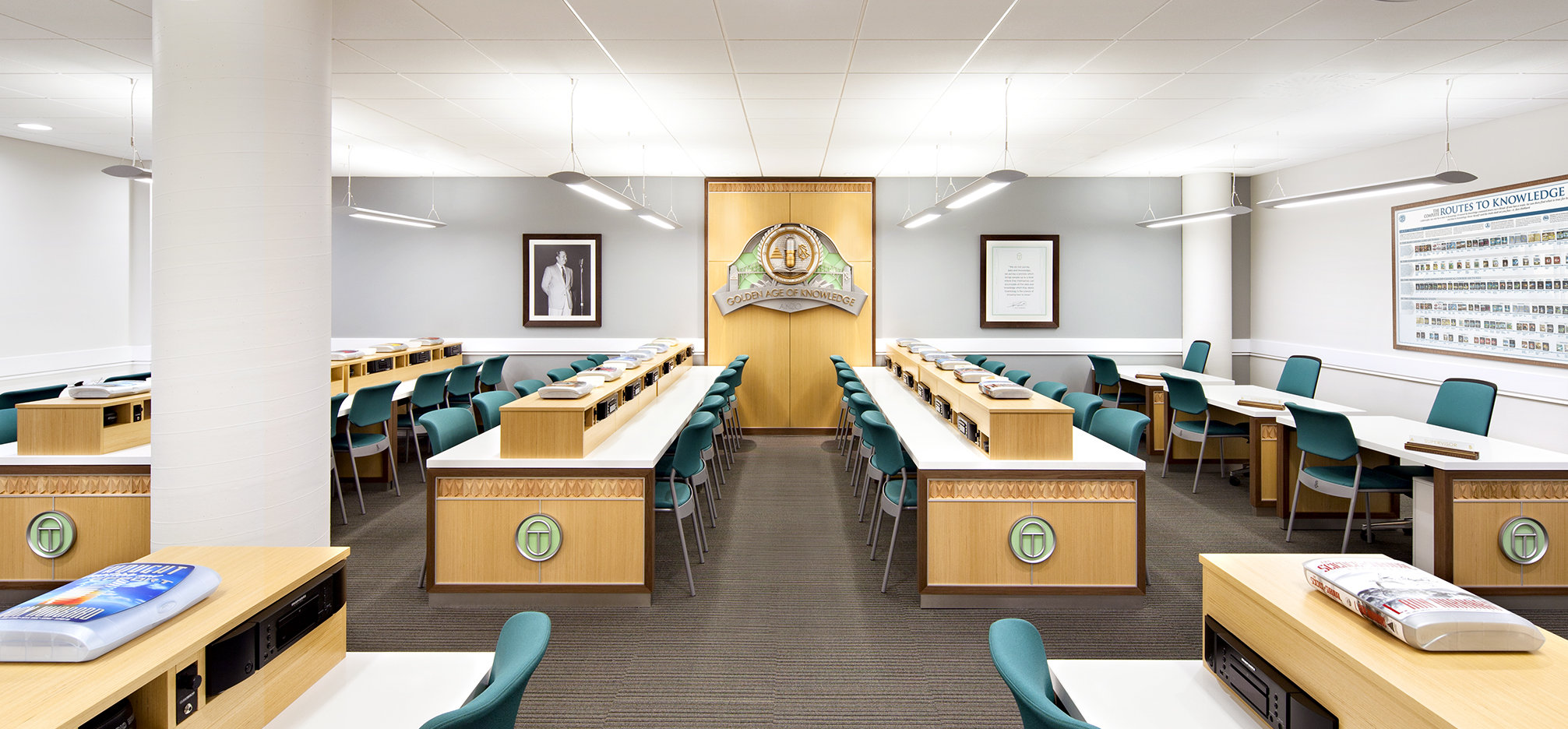 Uma sala de curso está dedicada ao estudo dos fundamentos da religião à medida que os Scientologists progridem pela Ponte para a Liberdade Total.
