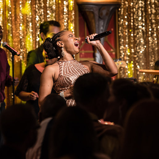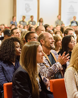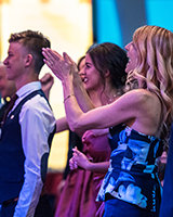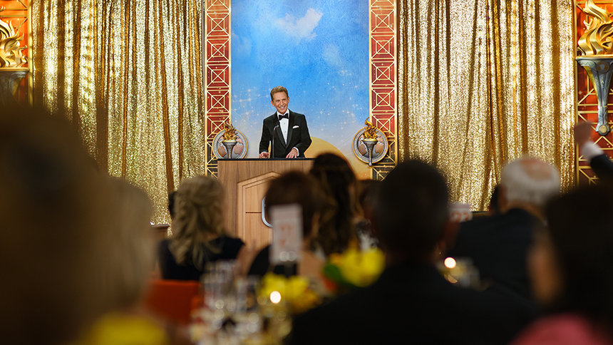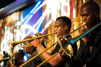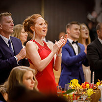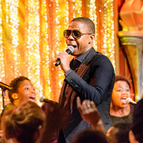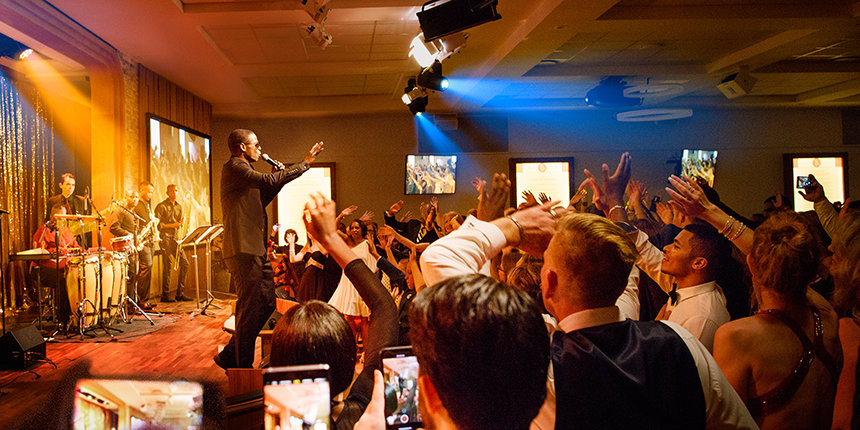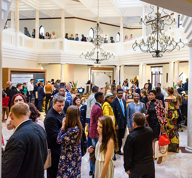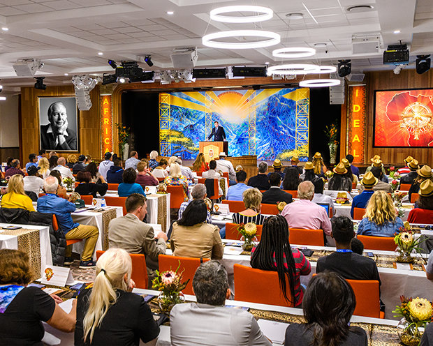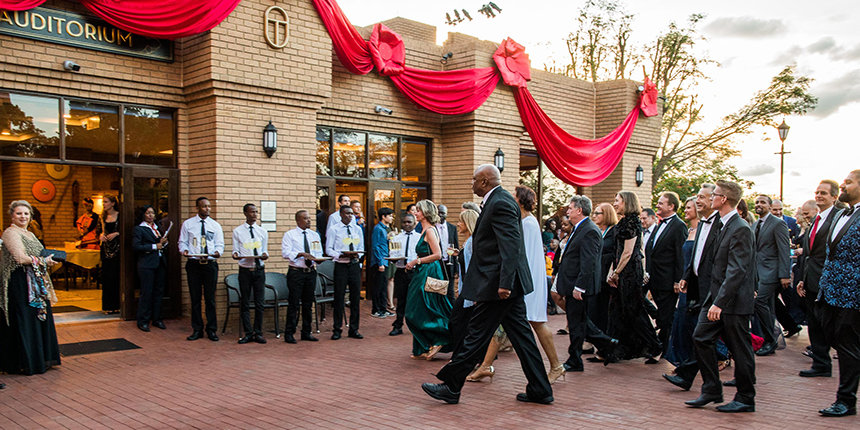 Os bravos representantes sul‑africanos da Associação Internacional de Scientologists (IAS) subiram ao palco para o primeiro Baile de Patronos Africano da IAS. A sala foi transformada numa glória dourada com panos de fundo reluzentes e arranjos de flores protea para a gala formal. O Sr. Miscavige homenageou mais de 100 membros da IAS por apoiarem os programas humanitários massivos do continente e reconheceu o seu impulso e dedicação por ajudarem a tornar esta celebração de Inauguração num sucesso. O orgulho era palpável à medida que estes Scientologists dedicados aceitavam os seus prémios. Depois dum jantar sumptuoso, as estrelas da dança abalaram a sala. A sensação das Caraíbas Michele Henderson e a lenda do hip‑hop de Harlem Doug E. Fresh estabeleceram o ritmo para o resto da noite enquanto os Patronos dançavam e festejavam.