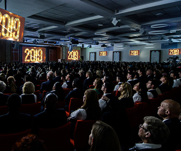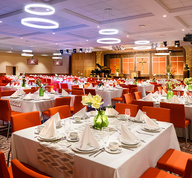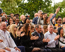 As festividades continuaram conforme os paroquianos do trio de Igrejas da Província de Gauteng encheram o Auditório do castelo para uma apresentação da Celebração de Ano Novo Internacional. Para surpresa e prazer da multidão, o Sr. Miscavige subiu ao palco do Auditório e deu à assistência um resumo informal da semana de eventos. A assistência levantou‑se num aplauso tremendo, sabendo que esta Inauguração não só abriu as portas para a liberdade espiritual para os Scientologists, como também promete esperança e ajuda para toda a África.