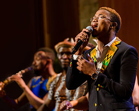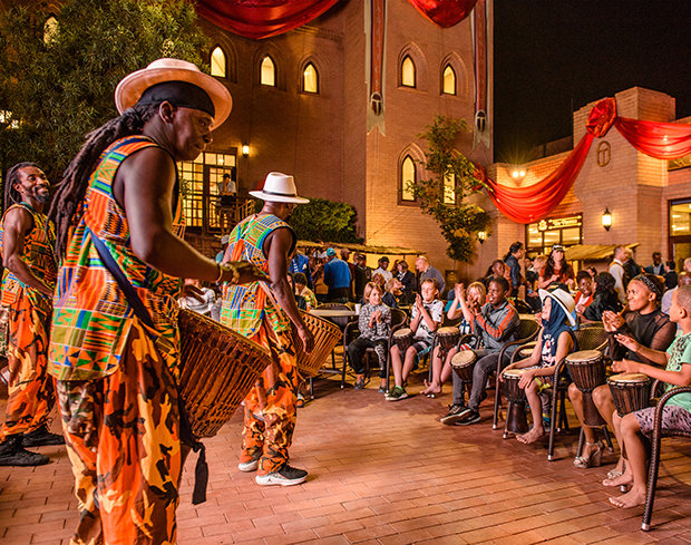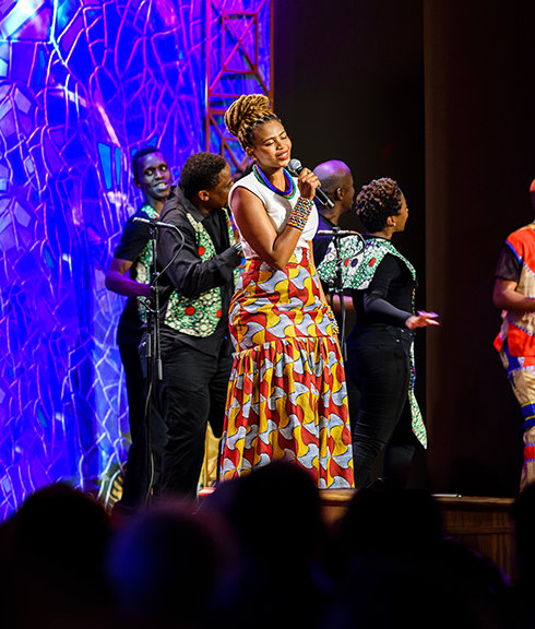Nessa mesma noite, mais de mil convidados — incluindo dignitários locais e representantes tribais — lotaram o Auditório de alta‑tecnologia e houve tantos participantes que também encheram outros espaços para um concerto espetacular. Alguns dos melhores talentos musicais da África do Sul subiram ao palco e receberam aplausos entusiásticos da audiência pela sua atuação emocionante das canções do álbum comemorativo Africa: The Winds of Change (África: Os Ventos da Mudança). O repertório incluiu canções escritas e compostas por L. Ron Hubbard em tributo ao espírito indomável da África. E esse espírito era totalmente visível conforme os artistas e a assistência se moviam — literal e figurativamente — ao ritmo e com a mensagem da música.