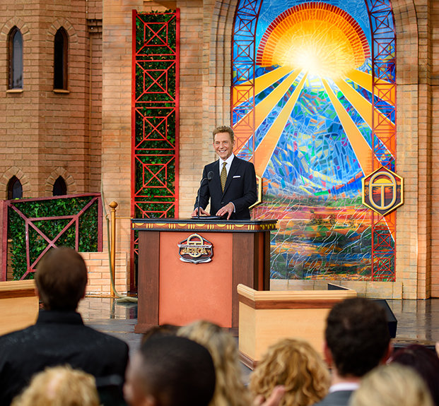 No Dia de Ano Novo, com vistas deslumbrantes à sua frente e a forma impressionante do Castle Kyalami atrás de si, o Sr. David Miscavige, líder eclesiástico da religião de Scientology, perante a multidão de milhares de pessoas reunidas, falou da natureza monumental desta inauguração sem precedentes.
