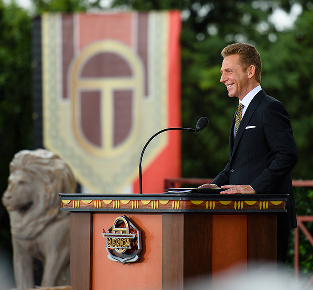 “Quando lemos os livros de L. Ron Hubbard, percebemos que mudamos o mundo se nos tornarmos voluntários dos seus pensamentos”, disse ele à multidão. “Gosto de dizer que Dianetics e Scientology personificam o espírito de Ubuntu: ‘Eu sou porque vocês são.’ É desse espírito que a nossa terra precisa tão desesperadamente. Que hoje se disparem os canhões e se toquem as trombetas. Que os leões rujam, os elefantes vagueiem e os leopardos corram, porque a África agora tem este castelo incrível como sua casa. E com isso, chegou um novo despertar à nossa querida África!”