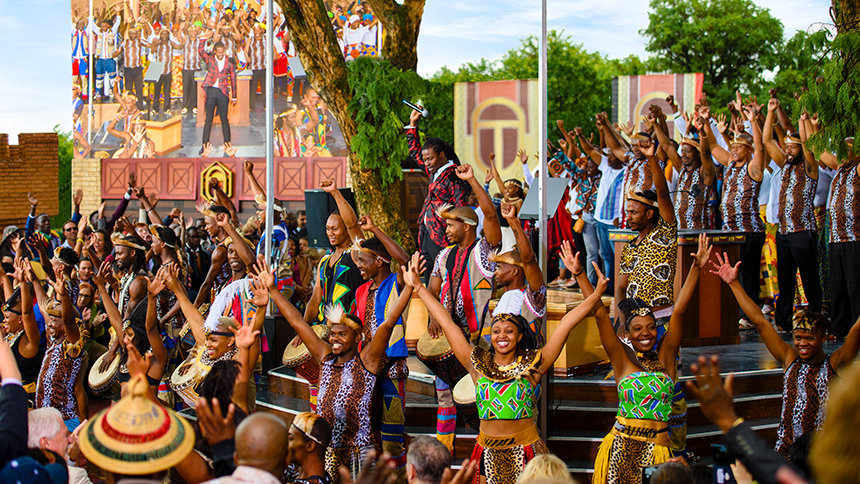 Em honra desse futuro extraordinário, um coro de centenas de pessoas vestidas com trajes africanos tradicionais, encheram o castelo da plataforma ao parapeito, dançando e cantando “Winds of Change” (Ventos da Mudança) — uma canção original especialmente escrita para esta ocasião. Inspirada por L. Ron Hubbard e pelo seu sonho de liberdade espiritual ilimitado para a África, o desempenho capturou os corações de todos aqueles na assistência. Os dignitários, representantes da polícia e do governo da África do Sul, uniram‑se em coro e coletivamente saudaram a ocasião histórica como um “novo despertar à nossa querida África”.