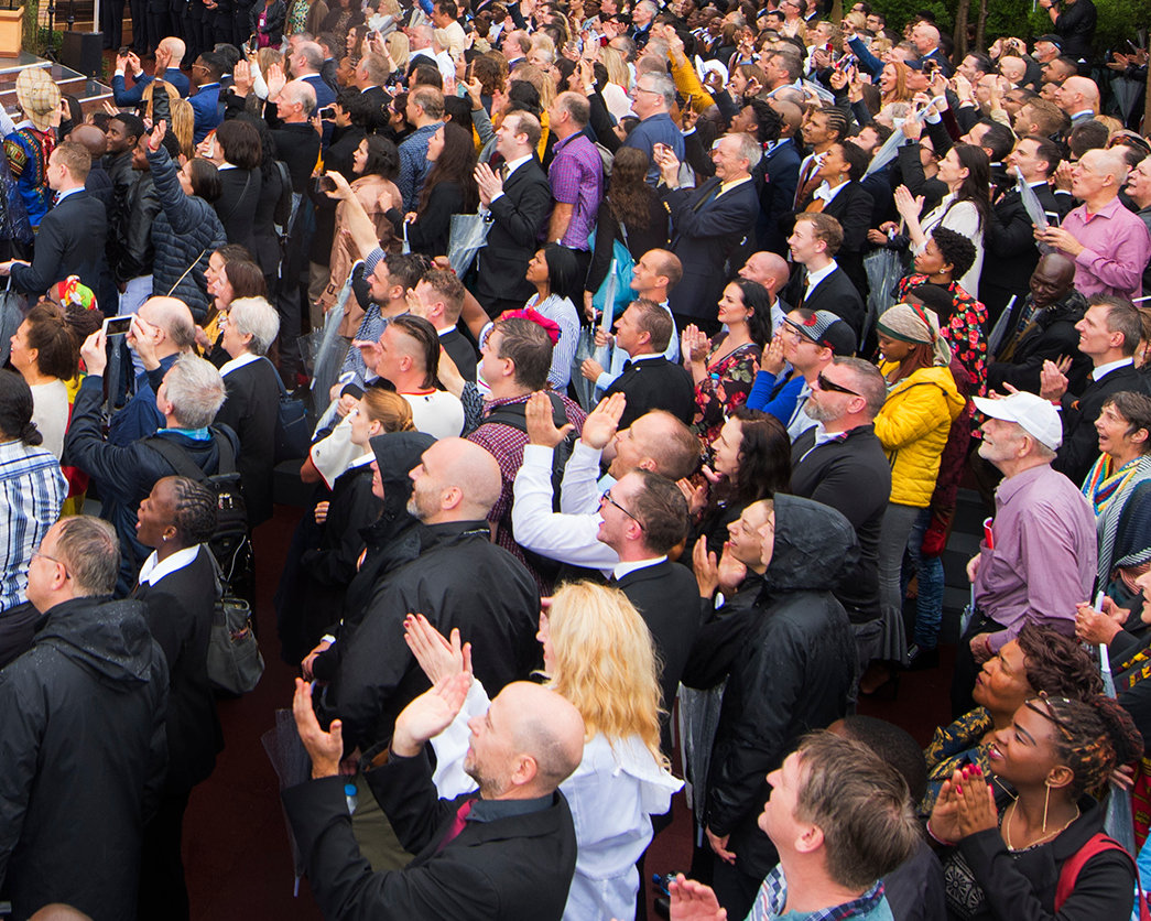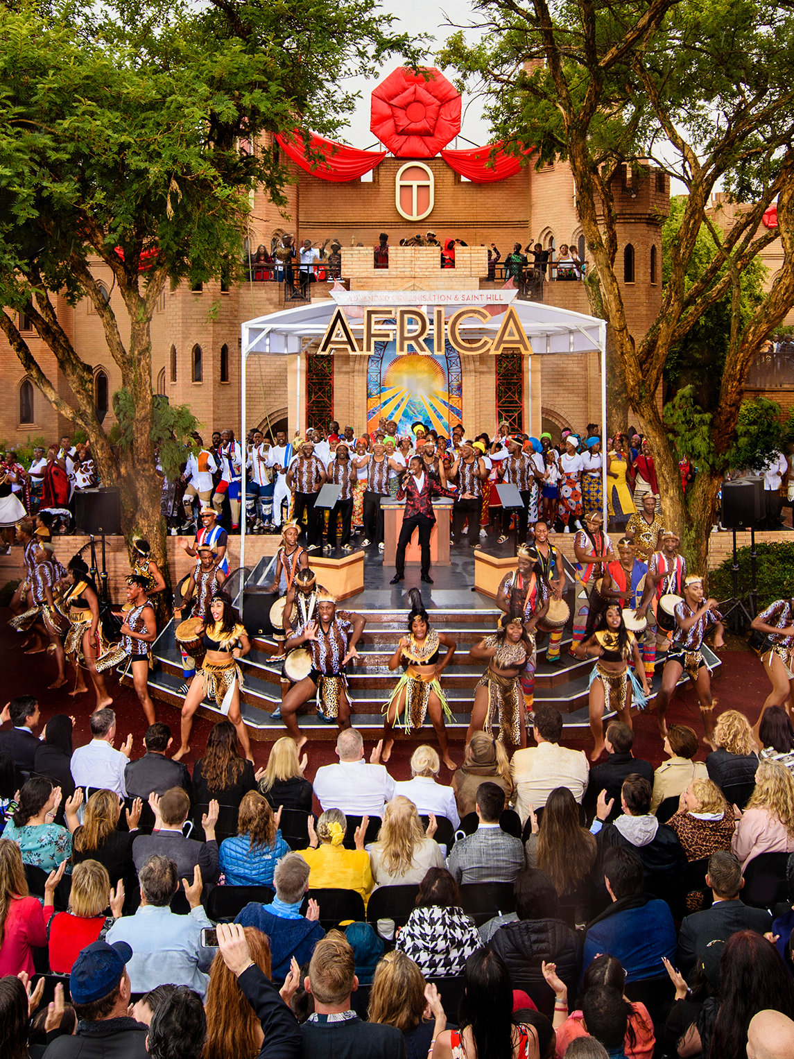 Em honra desse futuro extraordinário, um coro de centenas de pessoas vestidas com trajes africanos tradicionais, encheram o castelo da plataforma ao parapeito, dançando e cantando “Winds of Change” (Ventos da Mudança) — uma canção original especialmente escrita para esta ocasião. Inspirada por L. Ron Hubbard e pelo seu sonho de liberdade espiritual ilimitado para a África, o desempenho capturou os corações de todos aqueles na assistência. Os dignitários, representantes da polícia e do governo da África do Sul, uniram‑se em coro e coletivamente saudaram a ocasião histórica como um “novo despertar à nossa querida África”.