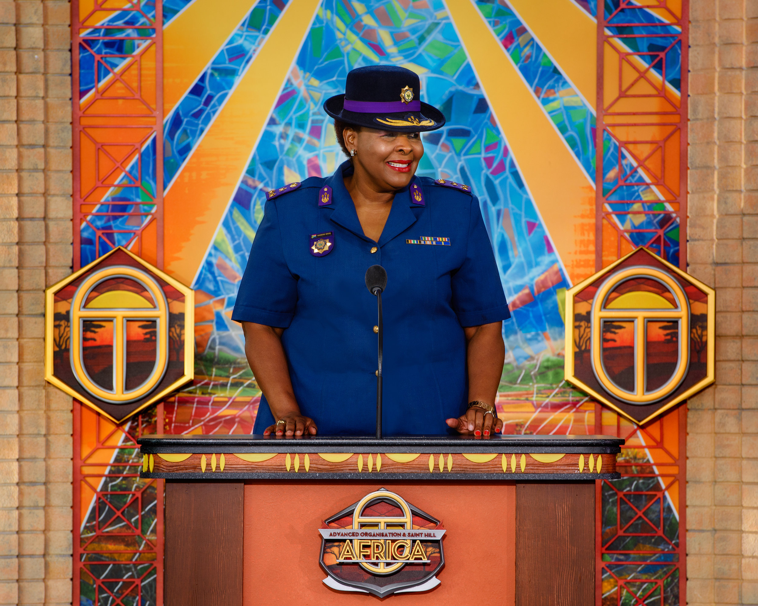 Brigadeiro Sthembiso Shobede‑Nkosi deu as boas‑vindas à Igreja de Scientology, ao seu novo lar, em nome da polícia da África do Sul. Além disso, ela falou de Kyalami como um bastião da nação na luta contra as drogas.
