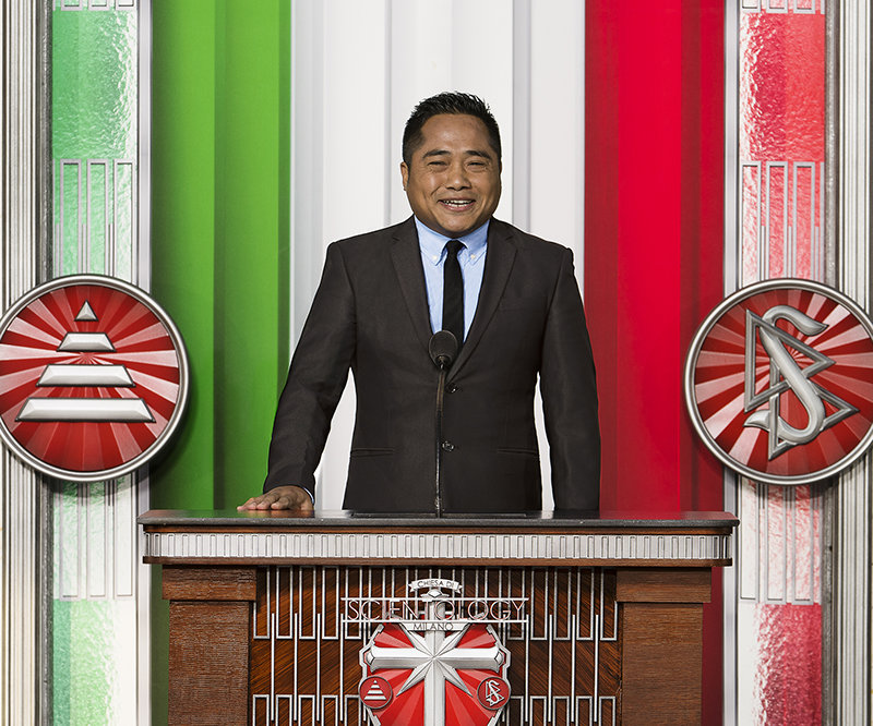 O Sr. Miscavige, Presidente do Conselho do Religious Technology Center — que voou diretamente do Reino Unido para Milão, depois de ter oficiado a abertura de Saint Hill Idealno dia