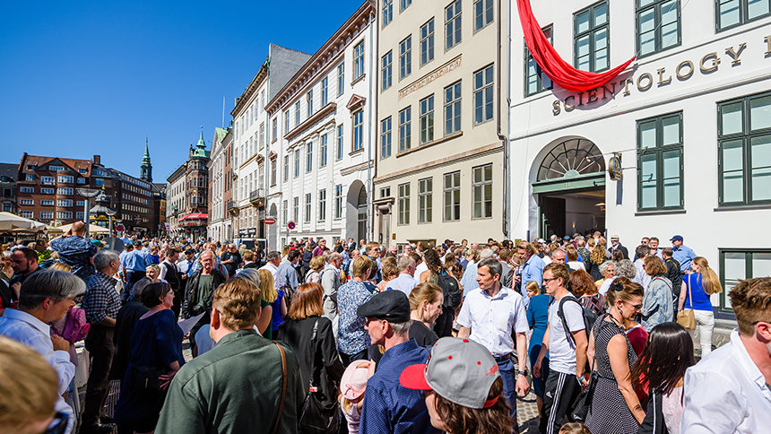 E assim foi, numa tarde gloriosa dinamarquesa, mais de 2500 Scientologists e convidados se reuniram na praça de calçada para celebrar uma nova página na história de uma das capitais mais antiga e rica em cultura da Escandinávia e o próximo passo da época de expansão da Igreja.