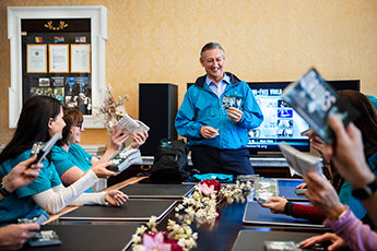 As ofertas desse conhecimento, notou o Sr. Miscavige, foram dadas ao mundo com uma graciosidade que é refletida no espírito de cooperação e serviço comunitário que o novo Centro representa.