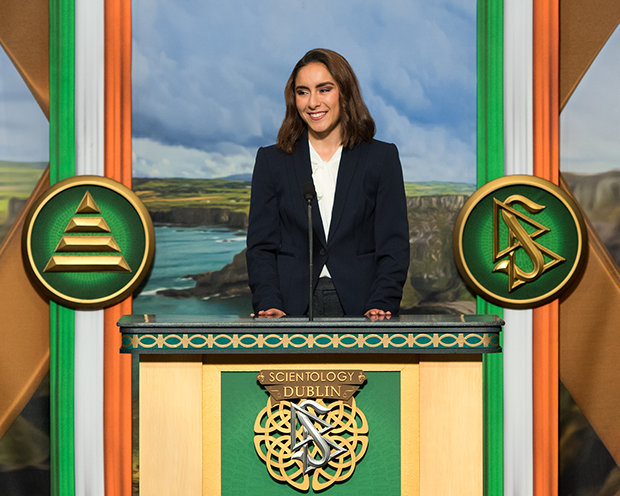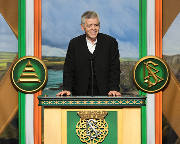 “Então, para a Irlanda eterna, Irlanda transcendente: mantiveram a literatura viva durante 500 anos. Construíram a América e possivelmente até a descobriram. Ensinaram à Humanidade a igualdade e como viver com dignidade na sua ausência. E ensinaram‑nos que não há nenhum bem mais precioso do que a beleza, ao qual vocês apoiam. É por isso que estamos orgulhosos de vos apoiar, à medida que abrimos esta nova Igreja de Scientology e Centro Comunitário de Dublin.”