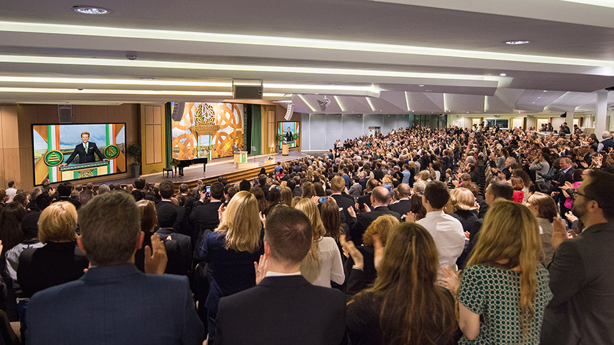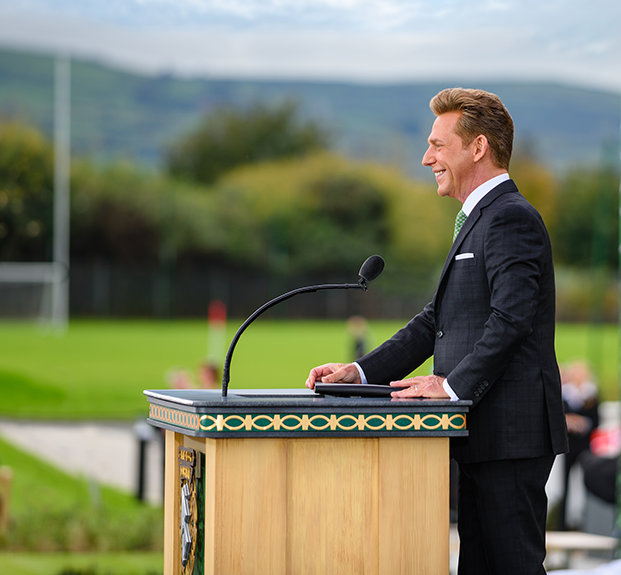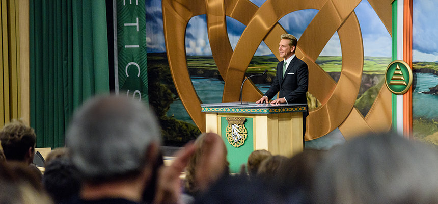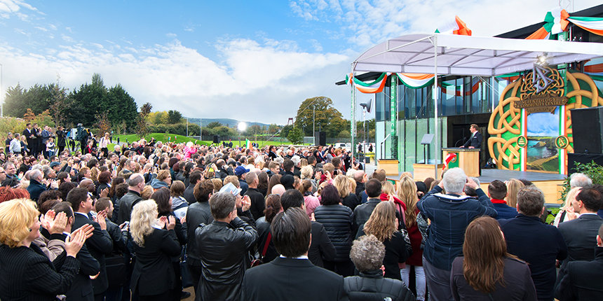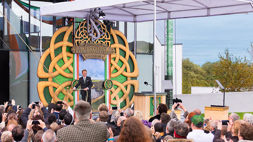 “Hoje cumprimos a promessa para honrar a terra que o nosso Fundador, L. Ron Hubbard, tanto adorava e um povo que ele descreveu como maravilhosamente afável, mesmo que o tempo não fosse sempre assim”, o Sr. David Miscavige, o líder eclesiástico da religião de Scientology, disse à multidão reunida. “E se isso não o mostra, então permita‑me citar do vosso próprio Sr. Yeats: ‘Muitas vezes o homem vive e morre entre as suas eternidades… E a Irlanda antiga sabia de tudo isso.’”