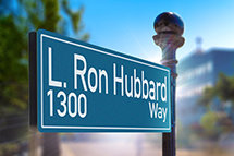 E numa rua chamada L. Ron Hubbard Way.
