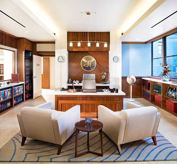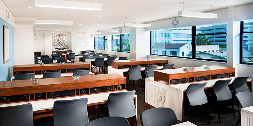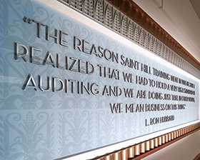 Os Scientologists ascendem a Ponte ao longo da L. Ron Hubbard Way avanço ao treino e processamento de nível superior na Organização Saint Hill Americana Ideal (ASHO). ASHO também foi transformada numa Saint Hill Ideal Modelo. Esta apresenta dois andares dedicados à entrega de treino de Scientology com uma capacidade para centenas de estudantes de uma só vez. Também duplica a capacidade para a audição (aconselhamento espiritual) com dois amplos Centros de Aconselhamento Hubbard. Estes Centros são particularmente notáveis por entregar os famosos Processos de Poder. O Hall do Líbano de ASHO é agora similarmente restaurado e recentemente equipado para os workshops e convenções.