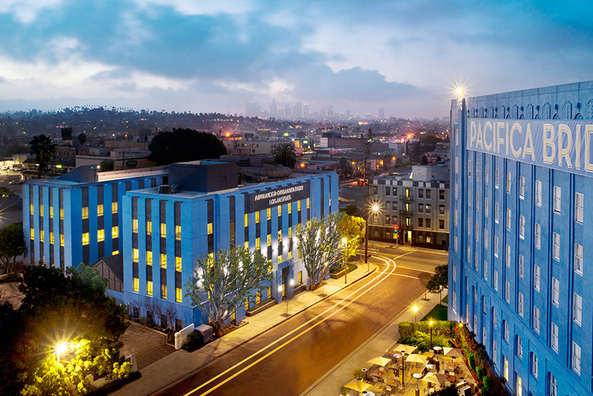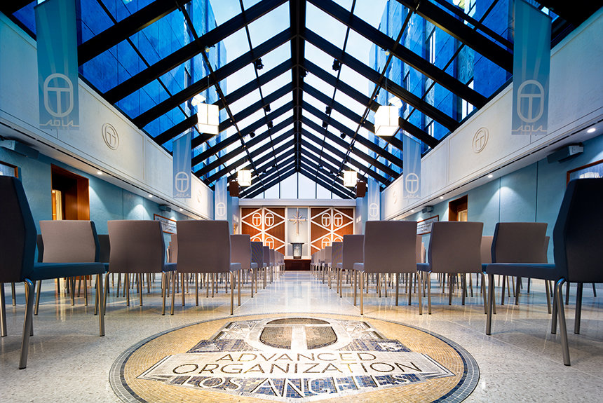Através da L. Ron Hubbard Way, no topo figurativo da Ponte Pacífica Ideal, permanece a nova Organização Avançadas de Los Angeles Modelo Ideal (AOLA). É onde os Scientologists embarcam na sua jornada para OT e estados de consciencialização espiritual mais elevados. Para esse fim, AOLA conta com amplas salas de curso para centenas de Auditores Solo