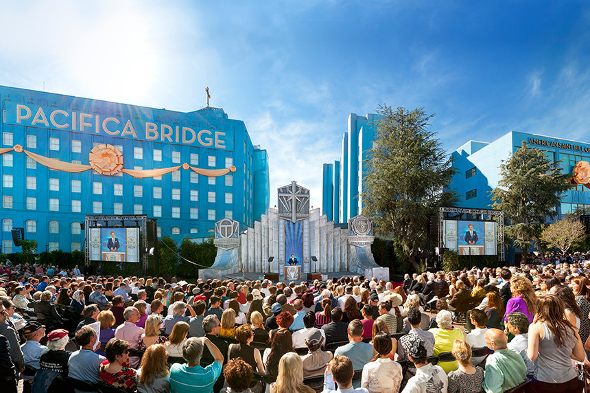 A Ponte Pacífica começa na intersecção da famosa Sunset Boulevard e a L. Ron Hubbard Way com a nossa Igreja de Scientology Ideal de Los Angeles. Aí, os visitantes são saudados e