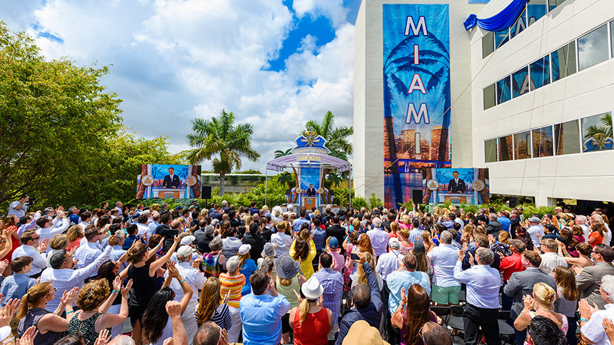 Há um novo brilho nesse carisma. Na Autoestrada 1 dos EUA, entre a lendária atmosfera boémia de Coconut Grove e a empreendedora cidade internacional de Coral Gables, 2000 Scientologists e convidados reuniram‑se no sábado, dia 29 de abril de 2017, numa estrutura proeminente para celebrar a inauguração de uma Igreja de Scientology.