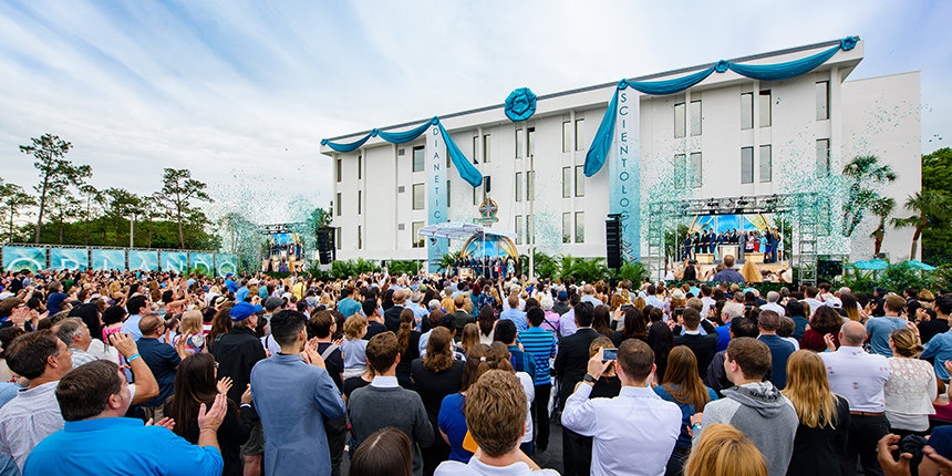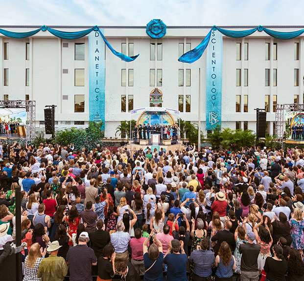 Enquanto a poucos minutos da avenida dos parques temáticos de Orlando, International Drive, pode ver a “estrela brilhante” mais recente, já a brilhar na galáxia interestelar crescente da Igreja. As instalações expansivas ficam a cerca de 2 hectares no centro da maior cidade de Florida, ao longo das margens do Lago Ellenor. Neste lugar encantador, onde o riso e a imaginação são intemporais, uma multidão de mais de 2 mil Scientologists e amigos reuniram‑se sob o sol de sábado da Florida, no dia 12 de maio, para celebrar a inauguração da nova Igreja de Scientology.