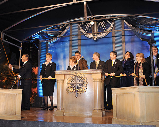 Acompanhado por Scientologists locais que lideraram o esforço para construir a nova Igreja, o Sr. Miscavige cortou a fita e convidou todos a entrarem.