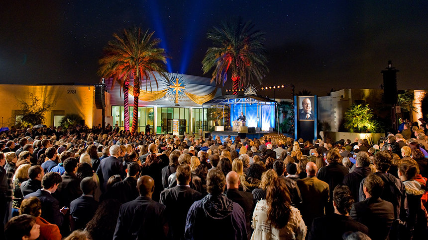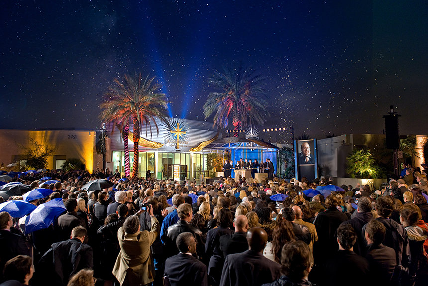 Ao acolher os paroquianos e convidados, o Sr. Miscavige disse: “Vocês não se aproximam muito mais do espírito do que representamos do que uma cidade que repousa sobre os sonhos dos artistas e trata todas as pessoas como alguém. Então, sim, abrimos novas Igrejas em epicentros culturais anteriormente. Mas falai de ‘Centro de Estágio do Planeta Terra’. Esta está numa cidade tão brilhante que podem até mesmo vê–la a brilhar no espaço profundo. E agora é a nossa nova casa da Igreja de Scientology e Centro de Celebridades de Las Vegas.”