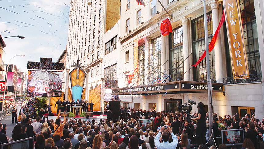 A Igreja de Scientology na Cidade de Nova Iorque, situada à saída da Times Square, foi uma oferta da Associação Internacional de Scientologists ao povo de Nova Iorque, em reconhecimento da sua coragem e espírito face à catástrofe do World Trade Center em 2001.