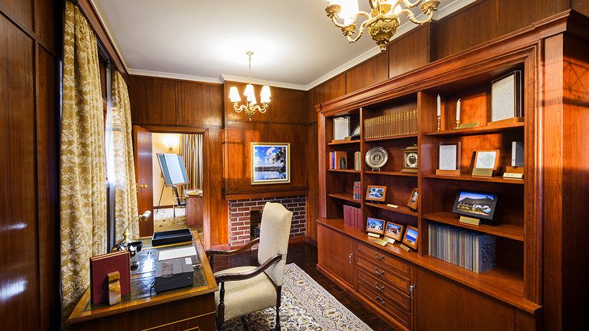Hoje, este local britânico‑colonial encontra‑se meticulosamente restaurado — tal como era na época do Sr. Hubbard. O papel de parede, os armários e as luminárias foram combinados com fotografias de arquivo. As obras de arte foram recuperadas. As mesmas máquinas de escrever que o Sr. Hubbard forneceu à sua equipa de dactilógrafos foram fielmente preservadas. Entre outros artefactos em exposição estão o fato que ele usou enquanto filmava as suas lendárias conferências do Curso de Clearing e até mesmo a mala que usou no seu regresso a Inglaterra.
