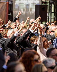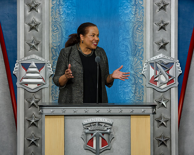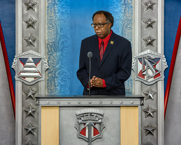 A liderar a celebração da Inauguração estava o Sr. David Miscavige, o líder eclesiástico da religião de Scientology, que saudou os Scientologists do Estado da Estrela Solitária com um reconhecimento do seu propósito e orgulho.