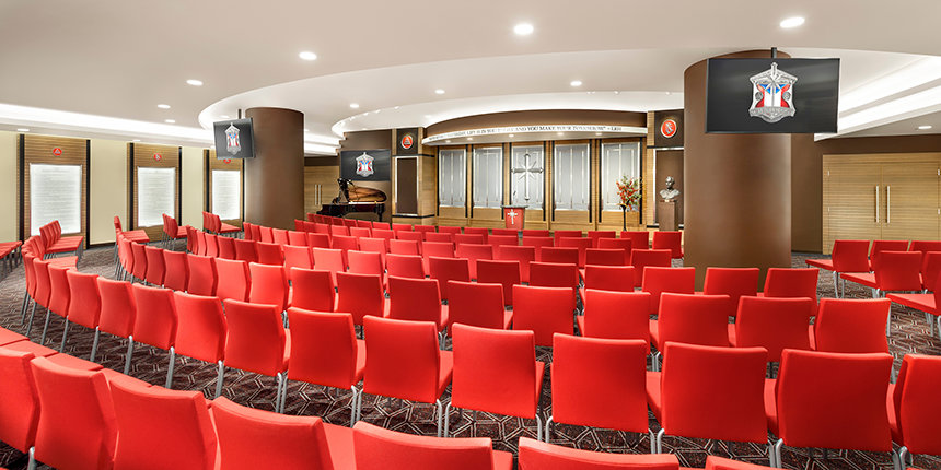 A Capela da Igreja possibilita a realização de reuniões congregacionais de Scientology, incluindo Serviços Dominicais, Casamentos e Batismos — bem como eventos para os membros de todas as religiões em nome da colaboração comunitária. A nova Igreja também inclui várias salas para seminários e salas de aula, para além duma ala de salas para a audição (aconselhamento espiritual) de Scientology.