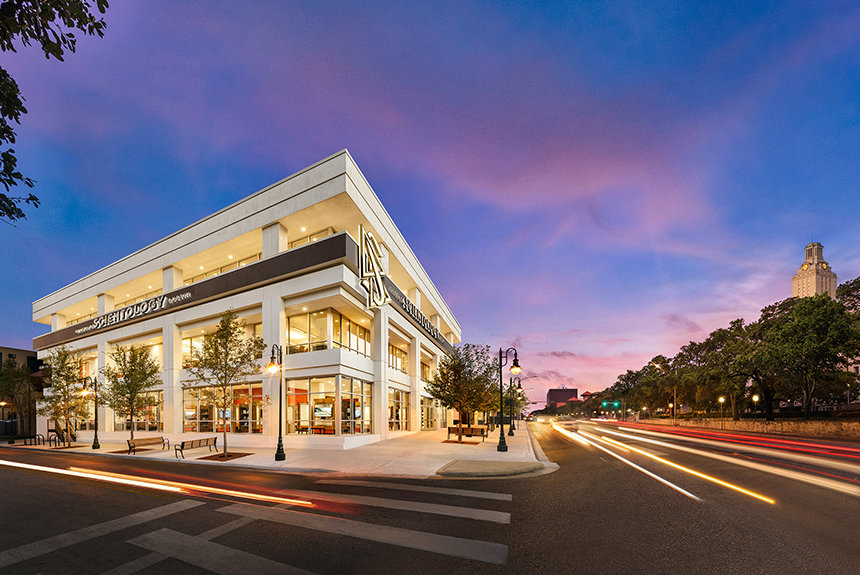 A magnífica nova Igreja de Austin fica mesmo em frente à Universidade do Texas, onde 70 000 pessoas caminham pela movimentada avenida todos os dias. A partir de hoje, as janelas desde o chão ao teto da Igreja convidam os transeuntes a vir, olhar, ouvir e saborear a Liberdade Espiritual do Texas.