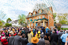 A história transformativa do livro também esteve em exibição com uma apresentação visual impressionante da cerimónia de abertura de um novo Local Histórico de LRH: a primeira Fundação de Dianetics. Inaugurado no mês passado no n.º 42 da Aberdeen Road, em Elizabeth, Nova Jérsia, dignitários juntaram‐se a Scientologists e vizinhos que testemunharam esse legado do Livro Um a voltar à vida.