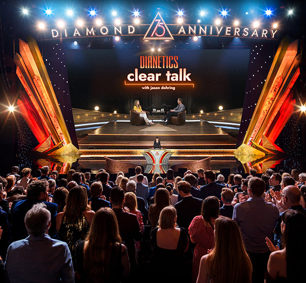 A noite guardou ainda mais coisas, com a finalidade de criar uma nova lente ousada sobre a ciência moderna da saúde mental. Dianetics: Clear Talk é uma série completa de televisão — conversacional, pessoal — e pura Dianetics. Destacando artistas e atletas, atores e empresários, o programa, filmado com uma audiência ao vivo, será transmitido na televisão da Scientology Network — cuja audiência mais que duplicou no ano passado, alcançando todos os países da Terra.