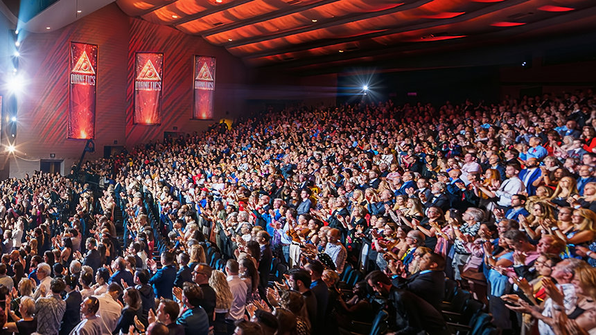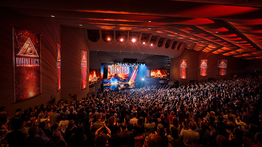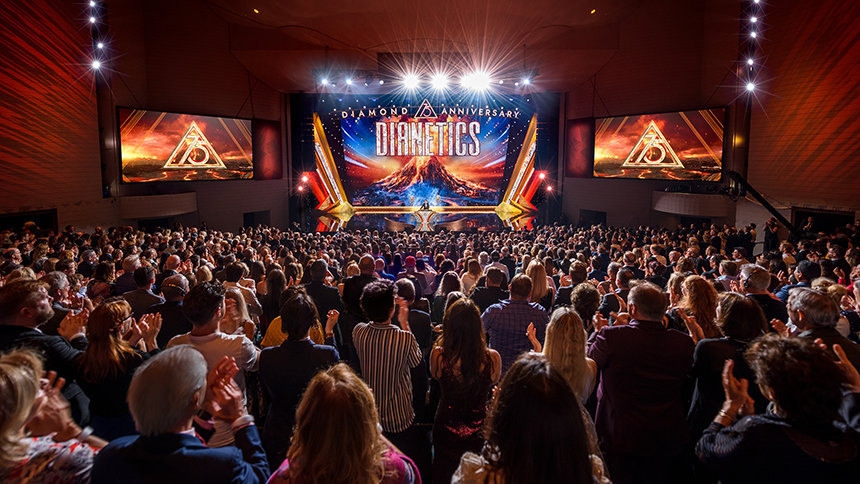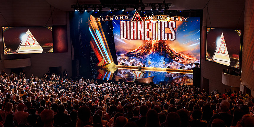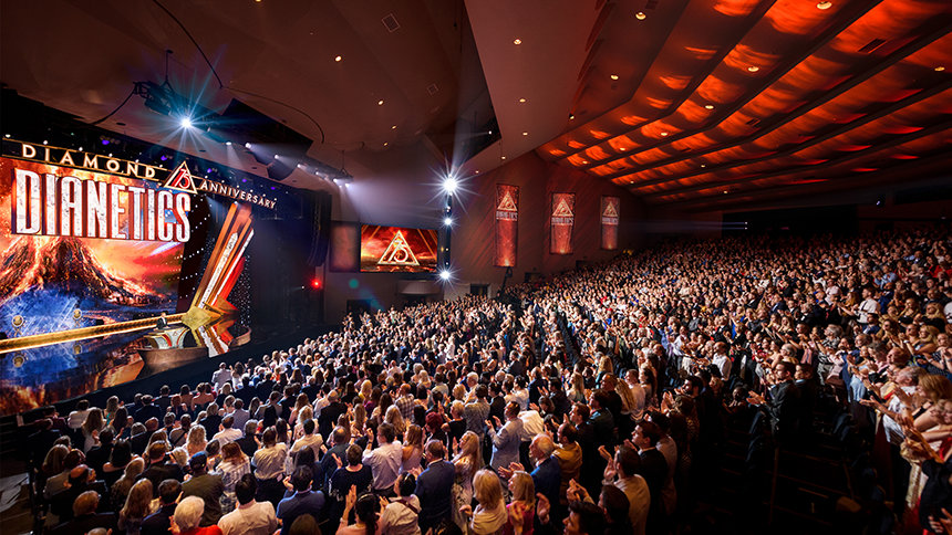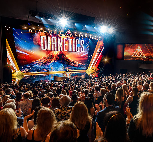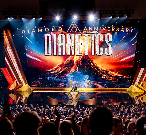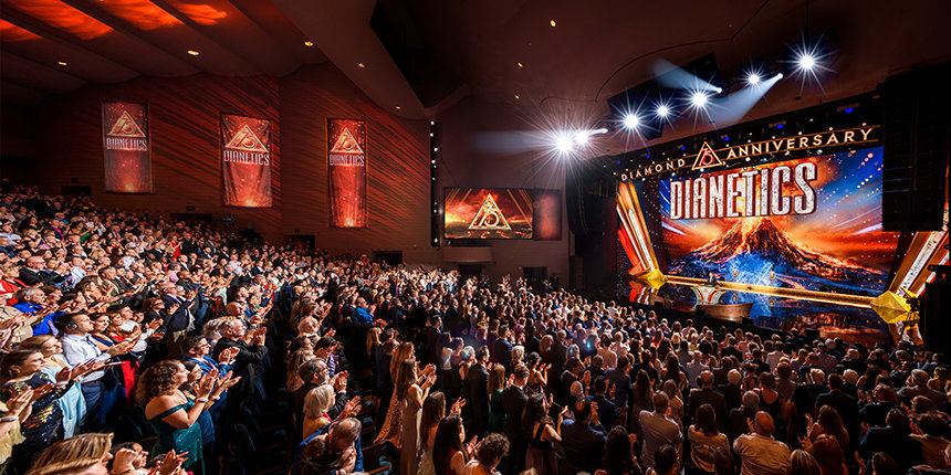A multidão irrompeu numa ovação de pé, longa e espontânea, quando apareceu o Sr. David Miscavige, o líder eclesiástico da religião de Scientology. “Exatamente há 75 anos, um livro chamado Dianetics desencadeou uma força sísmica que abalou o globo”, começou ele. “Ao celebrarmos esta noite, estamos a fazer nada menos do que honrar a força mais potente na Terra, uma força para a sanidade e a sobrevivência.