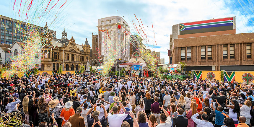 No entanto, apesar de todo o brilho da noite, havia ainda mais uma estrela brilhante, do outro lado do mundo. Os participantes testemunharam a seguir os destaques filmados da Inauguração da Org Ideal mais recente de Scientology no Cabo Oriental, África do Sul. Uma obra‑prima restaurada de 10 andares, com 90 anos, no local de nascimento de Nelson Mandela e com vista para o vasto ponto de encontro de terra e mar na Baía de Mandela.