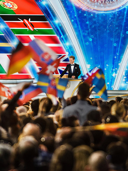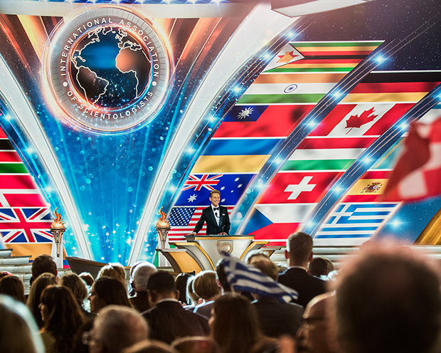Numa declaração sumária da noite, o Sr. David Miscavige, líder eclesiástico da religião de Scientology, declarou: “Tal como unimos, promovemos, apoiamos e protegemos Scientology, então temos de fazer o mesmo para toda a humanidade. Porque — e literalmente, se não axiomaticamente — sempre que alguém lá fora sofre, nós tornamo‑nos menos. Enquanto inversamente, sempre que alguém aproveita a nossa ajuda e é bem‑sucedido, é socorrido, ajudado, aliviado e esclarecido, nós tornamo‑nos mais.”