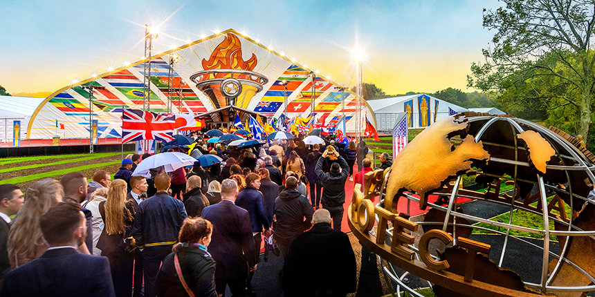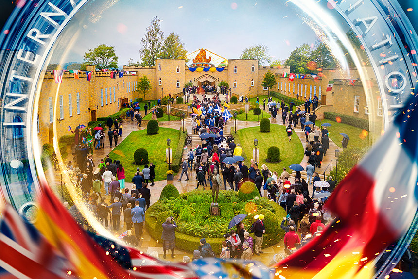As gaitas de foles quebraram o silêncio dos bosques de West Sussex neste canto digno de um livro de histórias em East Grinstead, uma cidade situada na fronteira da antiga floresta de Ashdown. O movimento rítmico dos cascos dos cavalos e o barulho dos saltos altos cortam através do ar fresco de outono. Um alvoroço de antecipação e uma mistura de mais de uma dúzia de línguas ecoaram através dos grandes portões e caminhos sinuosos desta propriedade de quase 300 anos.