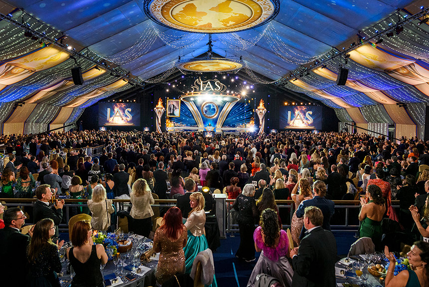 No sábado à noite, a Tenda ganhou uma vida resplandecente como o local para o Baile de Patronos anual da IAS. A gala reconheceu os membros da IAS de 59 países pela sua dedicação permanente para promover o movimento humanitário da IAS. A noite assumiu um significado ainda maior visto que, nos quatro anos desde o último Baile de Patronos em Saint Hill, quase 5000 Scientologists tornaram‑se Patronos da IAS — o mais alto na história.