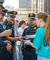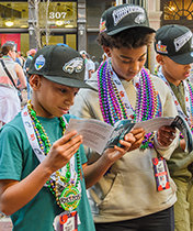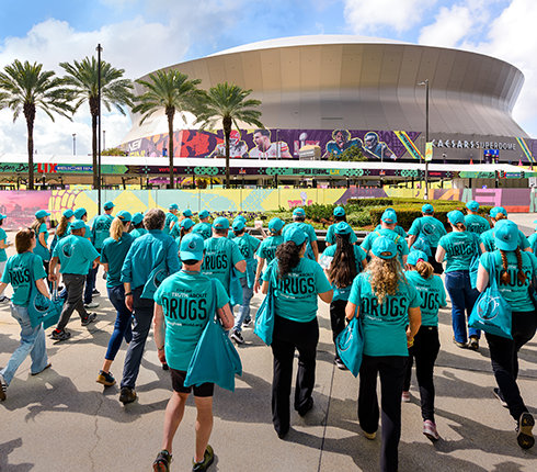 A MARCAR GRANDES PONTOS NO GRANDE JOGO O maior evento de um dia do ano foi a campanha anual de distribuição no Super Bowl em Nova Orleães. Mais de 120 voluntários do Mundo Sem Drogas percorreram o French Quarter, chegando por fim aos fãs com 360 000 folhetos A Verdade Sobre as Drogas.