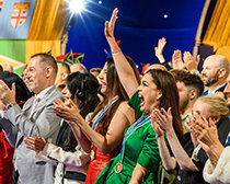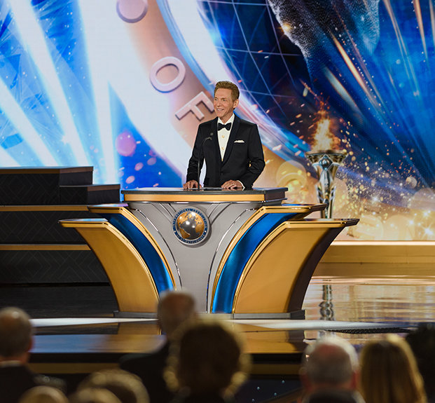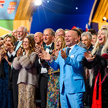 A culminar uma apresentação inspiradora sobre as campanhas humanitárias, o Sr. Miscavige revela uma nova programação de transmissões na Scientology Network — criando um mar de bandeiras a acenar e aplausos por toda a Grande Tenda.