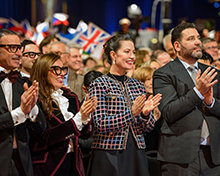 O crescendo de aplausos imparáveis ecoa por toda a tenda, homenageando os três mais recentes Vencedores da Medalha da Liberdade.