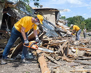 A fornecer alívio imediato em locais de catástrofes, quer sejam inundações devastadoras em Espanha, chuvas incessantes no Quénia, um terramoto de 7,1 no Nepal, um ciclone duplo em Madagáscar, um terramoto ao largo da costa do Equador — até mesmo chuvas torrenciais e trágicas inundações repentinas no Texas.