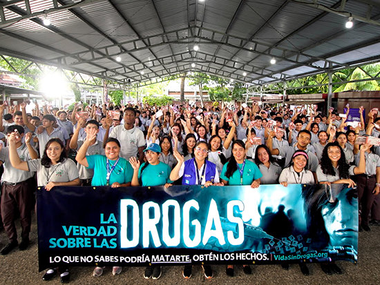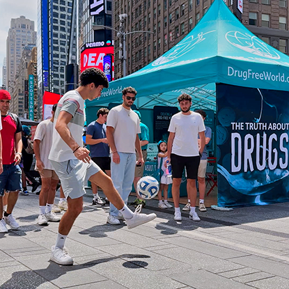 Mundo Sem Drogas, formando uma frente internacional contra o abuso de drogas, distribuindo milhões de cópias de A Verdade Sobre as Drogas. Os folhetos foram passados de mão em mão em cruzamentos globais e megaeventos desportivos como o Campeonato do Mundo de Clubes da FIFA e o Super Bowl. No total, a Fundação espalhou a Verdade Sobre as Drogas em 2700 eventos em 150 nações.
