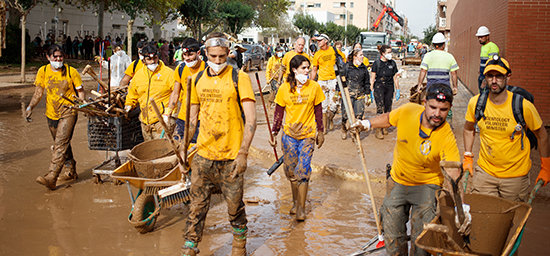 RESPOSTA DOS MINISTROS VOLUNTÁRIOS ONDE FOR E QUANDO FOR Os VMs responderam ao apelo este ano após mais de uma dúzia de desastres naturais, incluindo uma tempestade tropical na Venezuela, chuvas torrenciais no Texas, inundações catastróficas em Espanha, chuvas incessantes no Quénia e um devastador terramoto de 7,1 no Nepal.