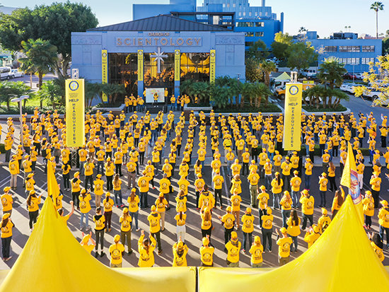 O Sr. Miscavige volta o foco para as Camisas Amarelas de renome mundial — os Ministros Voluntários de Scientology — instantaneamente reconhecidos por fornecerem ajuda indiscriminada por todo o mundo.