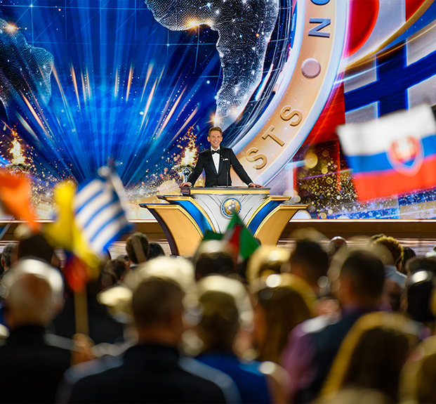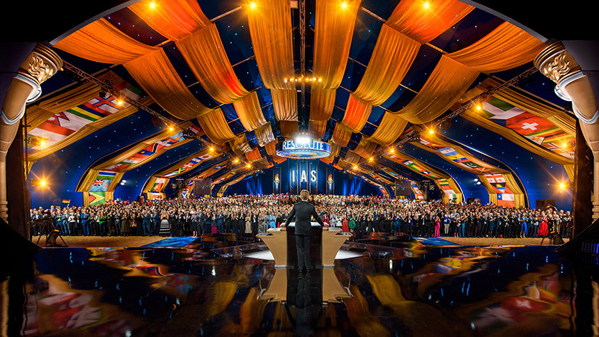 A elegância e o esplendor emolduram a celebração enquanto os membros da IAS convergem de seis continentes para Saint Hill, a histórica casa do Fundador de Scientology, L. Ron Hubbard, em West Sussex. Deslizando ao longo do tapete vermelho, a multidão entra na Grande Tenda com alegre antecipação, as bandeiras de todo o globo voando alto, os corações iluminados enquanto todos os olhos se voltam para o palco.