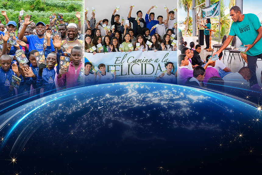 SALVAMENTO GLOBAL EM TODO O MUNDO Mais de 360 milhões de exemplares de O Que São os Direitos Humanos?, A Verdade Sobre as Drogas e O Caminho para a Felicidade foram entregues em todo o mundo, chegando a indivíduos em todas as nações da Terra.