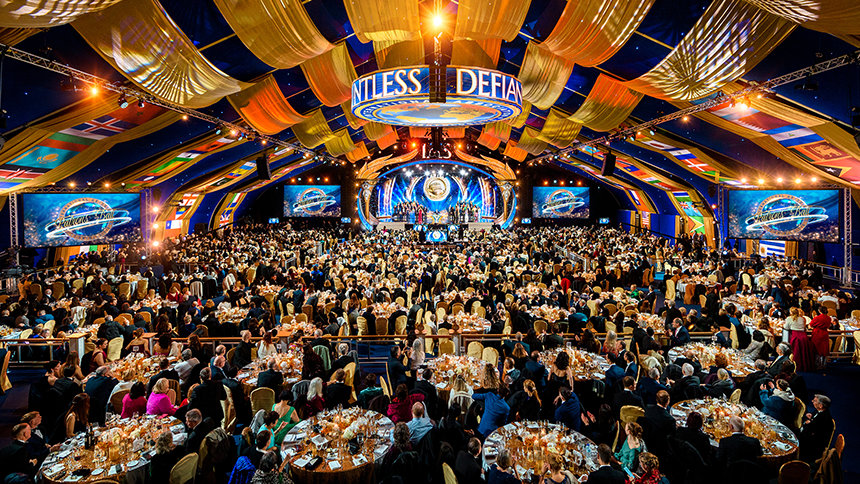 Na noite de sábado, a Grande Tenda tinha‑se transformado de forma impressionante num elegante salão de baile para o anual Baile de Patronos da IAS. Durante o majestoso jantar de gala, o Sr. Miscavige homenageou os membros que elevaram o seu apoio, avançando iniciativas globais em seis continentes. A noite foi animada por músicas com o vencedor do Grammy, Mark Isham, e um conjunto de artistas.