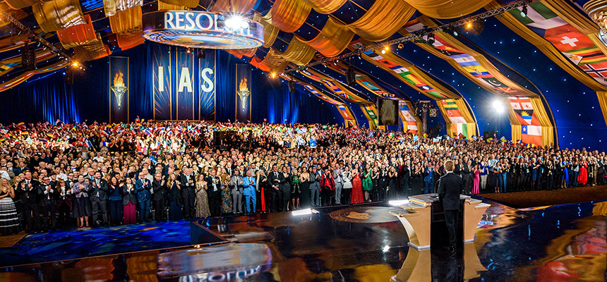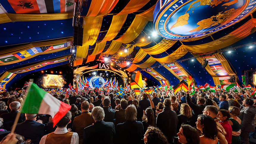 “Bem‑vindos à noite em que invocamos o espírito da IAS, um espírito nascido da unidade perfeita e que permeia o próprio ar que respiramos”, começou o Sr. David Miscavige, líder eclesiástico da religião de Scientology. “Esta noite o espírito da IAS está sempre presente, sempre abrangente e vivo para sempre.”